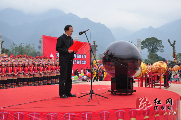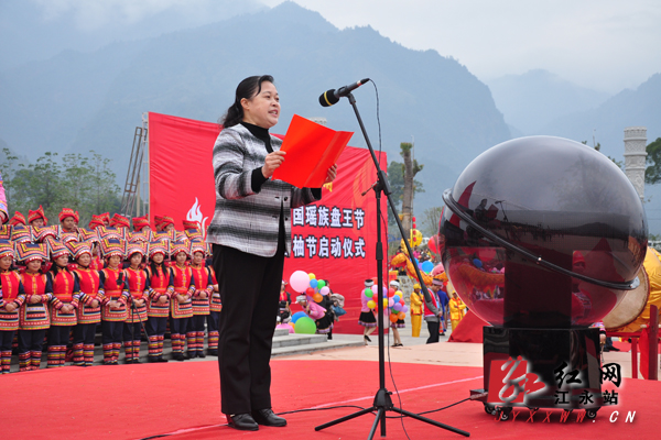 图:湖南省委常委、统战部长李微微宣布第十二届中国瑶族盘王节暨首届中国香柚节隆重开幕。