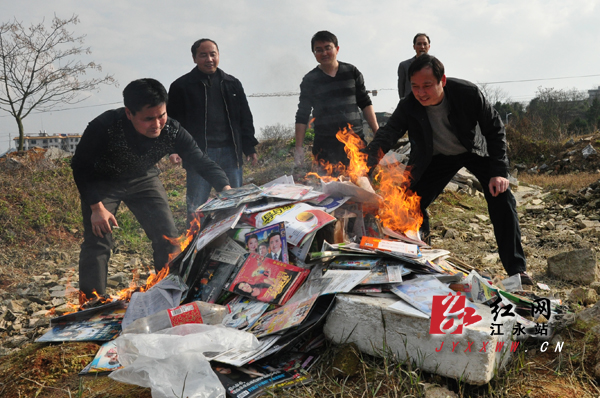 本网讯(记者 邓琼)2月1日下午,在县委常委、宣传部长卢文庆的指导下,县文化市场综合执法大队集中销毁2000余张(册)淫秽光碟等非法出版物。