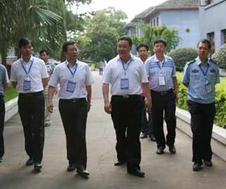 图:陈景茂(左二)、唐满平(左三)、张建坤(左一)等在一中检查高考工作。首积亮/摄