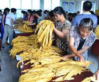 图:烟农正在学习散叶分级技术。段振花/摄