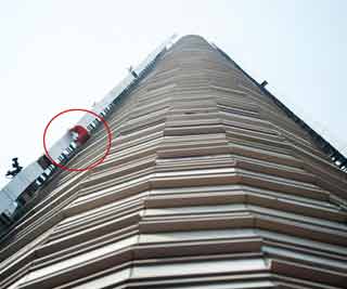 图:“蜘蛛侠”成功攀爬长沙第一高楼。