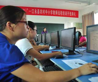 图:“国培计划”之中小学教师远程培训。任泽旺/摄