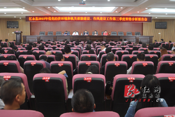 本网讯(记者 尹奋松)10月13日,全县2015年优化经济环境和机关效能建设、作风建设工作第三季度形势分析会召开。县委书记冯德校出席会议并作重要讲话,县委副书记唐慧云主持会议,县委常委、县纪委书记蒋俊善,县人大常委会副主任何勉才,县政协副主席义忠文,县直单位和省市驻江永单位主要负责人、纪检组长,乡镇场党政主要负责人、纪委书记,部分社区主任、村支部书记参加会议。