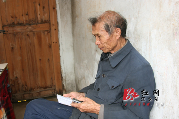 图:望着修村道时的记录本蒋年增思绪万千。尹奋松/摄