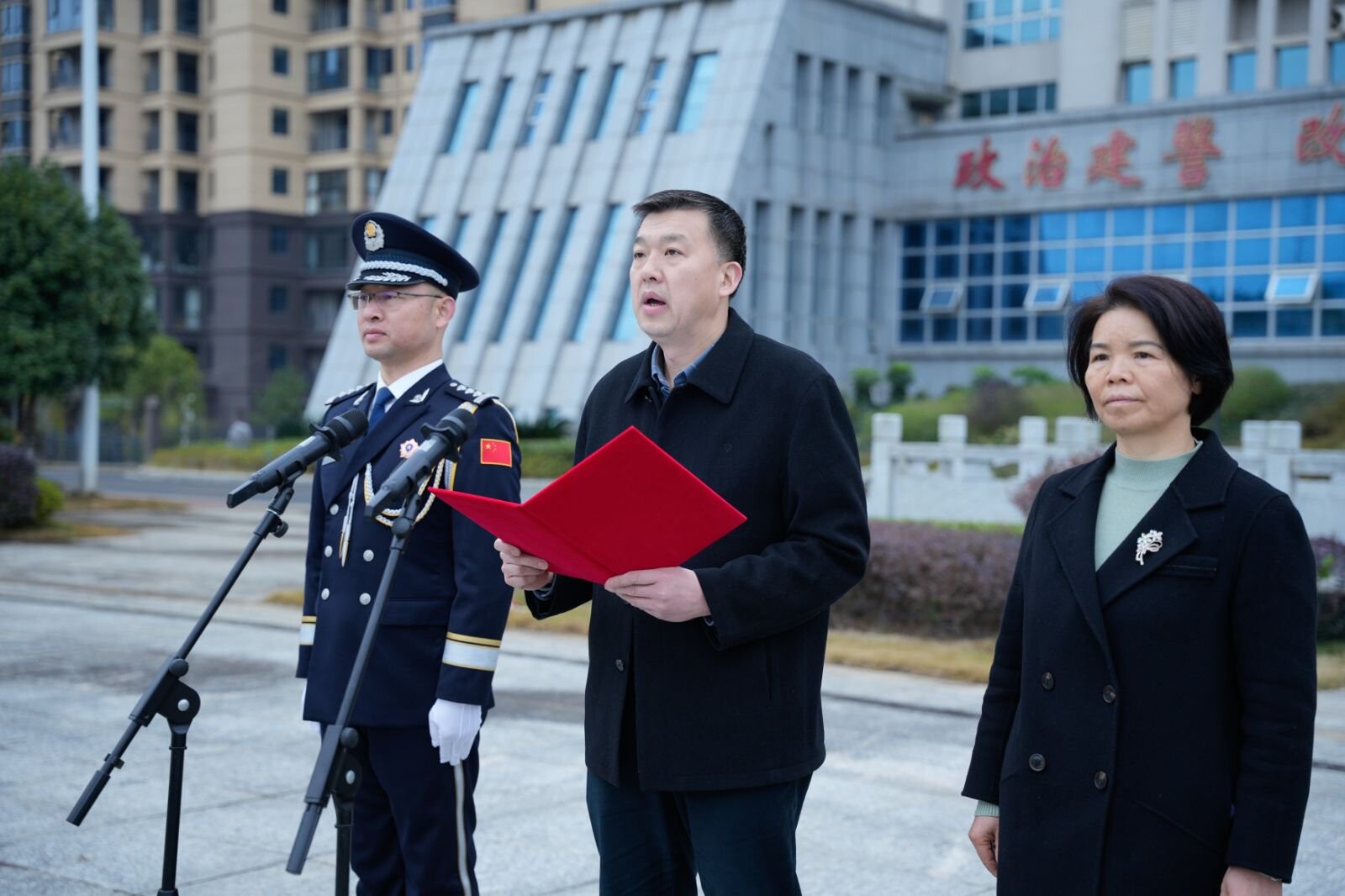 上午8时30分,在庄严的《中国人民警察警歌》声中,警旗冉冉升起,全体干警肃立致敬,升旗仪式结束后,全体人员面向党旗、警旗庄严宣誓,铿锵有力的誓言响彻现场,充分彰显了江永公安坚决拥护党的领导、矢志不渝为民服务的坚定信念。李群辉向全县公安民辅警致以节日问候,高度肯定全县公安机关在维护社会稳定、服务群众方面的显著成效,号召全体干警发扬“永冲锋”精神,为建设更高水平的平安江永、法治江永再立新功。