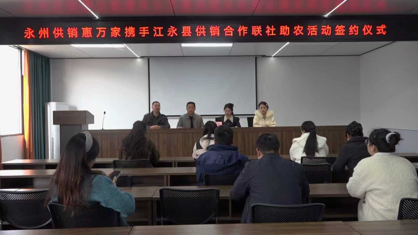 江永融媒1月15日讯(记者 欧阳文 通讯员 卢剑辉)1月14日,江永县潇浦镇供销合作社暨江永瑞丰收水稻种植统防统治专业合作社与湖南省供销惠万家农业发展有限公司签订抖音店铺代运营合作协议,以“专业运营+直播带货”模式拓宽江永地标农产品销路。