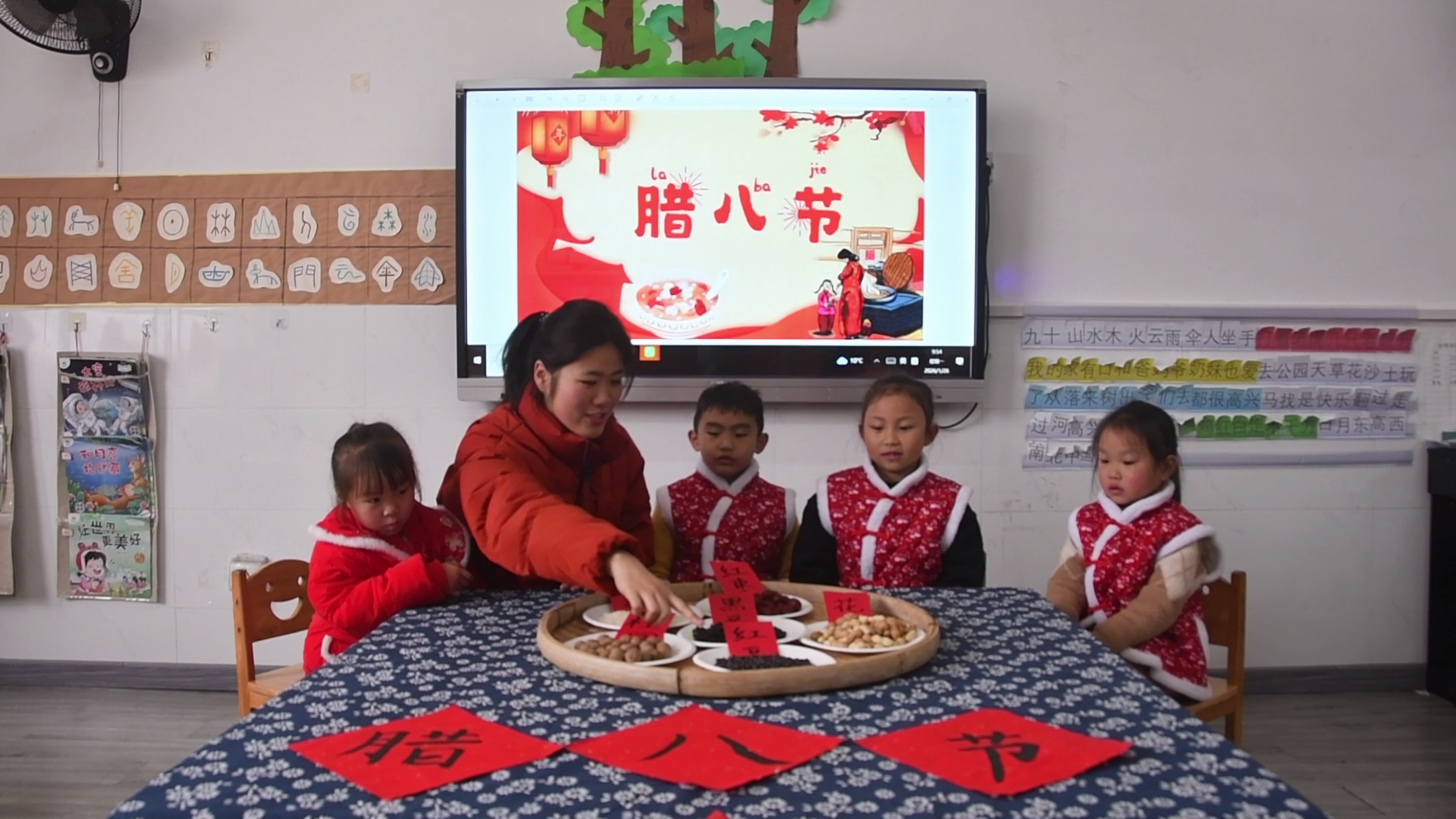 江永县工业集中区幼儿园教师王倩介绍,园方通过讲解腊八节民俗,让孩子们体验传统文化,在欢乐氛围中迎接春节。