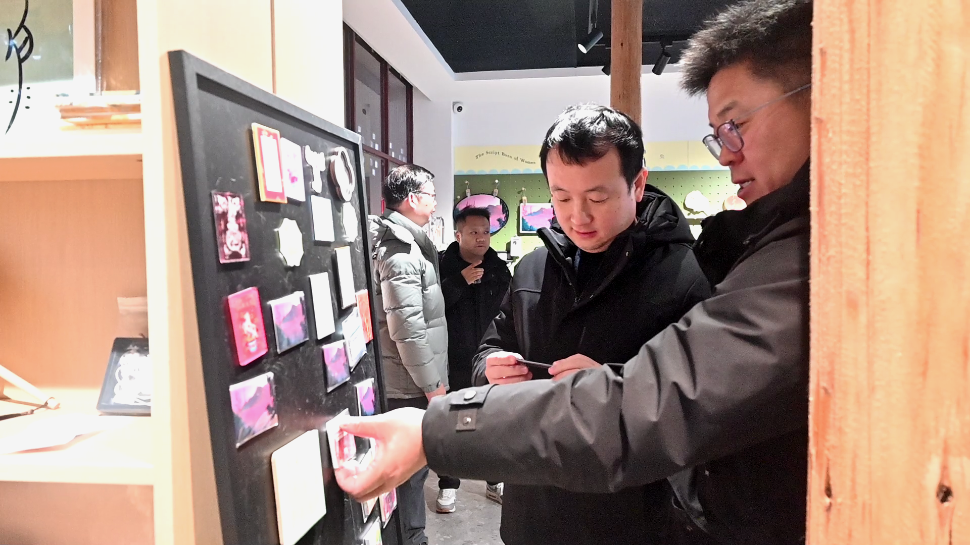 考察团一行还探访了承载着古代手工业文明的勾蓝瑶寨,和被誉为“世界唯一女性文字”的江永女书生态博物馆。在勾蓝瑶寨,独特的瑶族建筑风貌与深厚的民族文化底蕴令人赞叹;在女书园,神秘而精美的女性文字及其背后蕴含的文化精神,深深吸引了每一位考察者。两地人士共同感受了江永深厚的历史文化积淀,并就如何推动文旅深度融合、打造特色文化IP交换了意见。