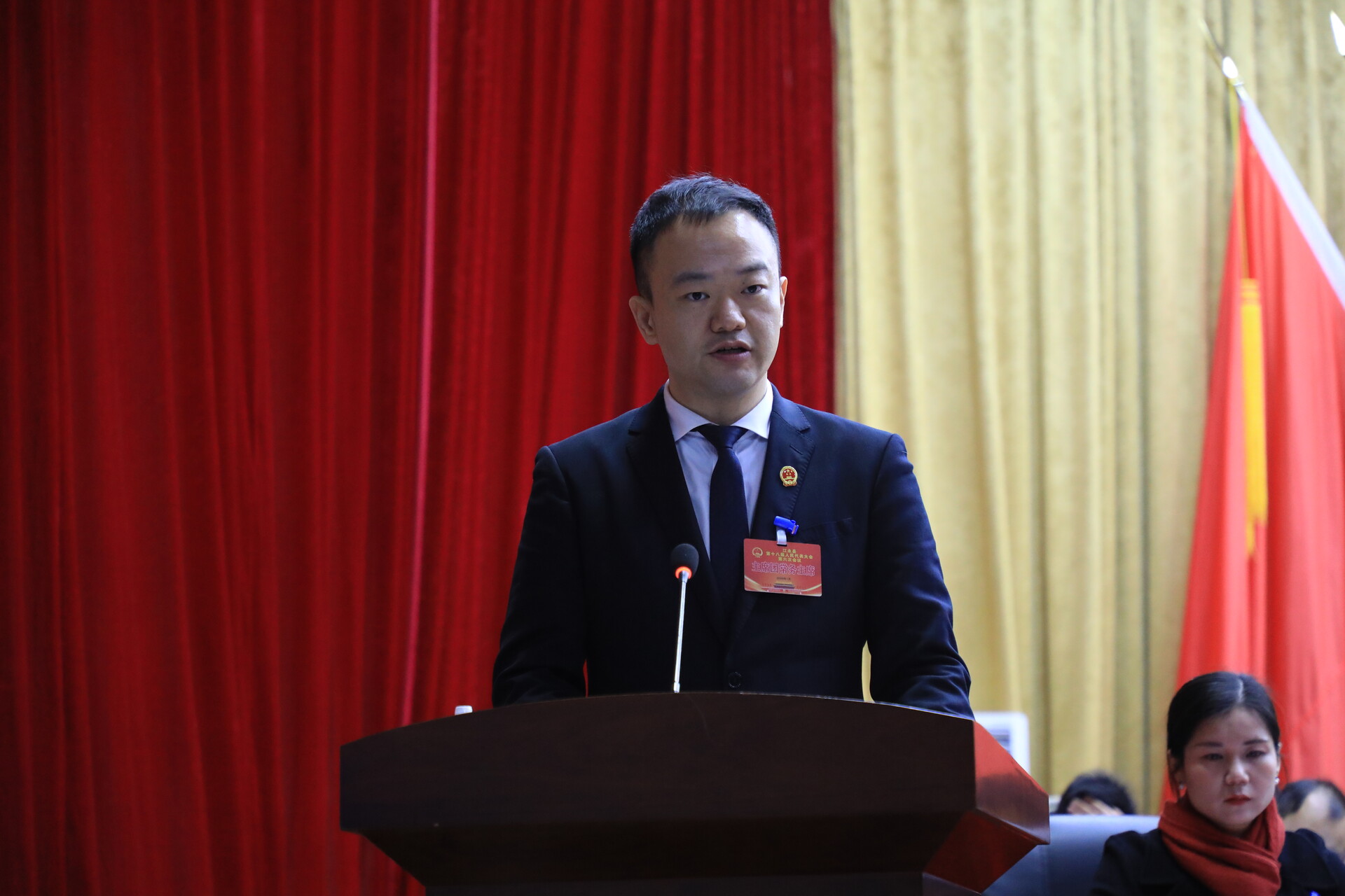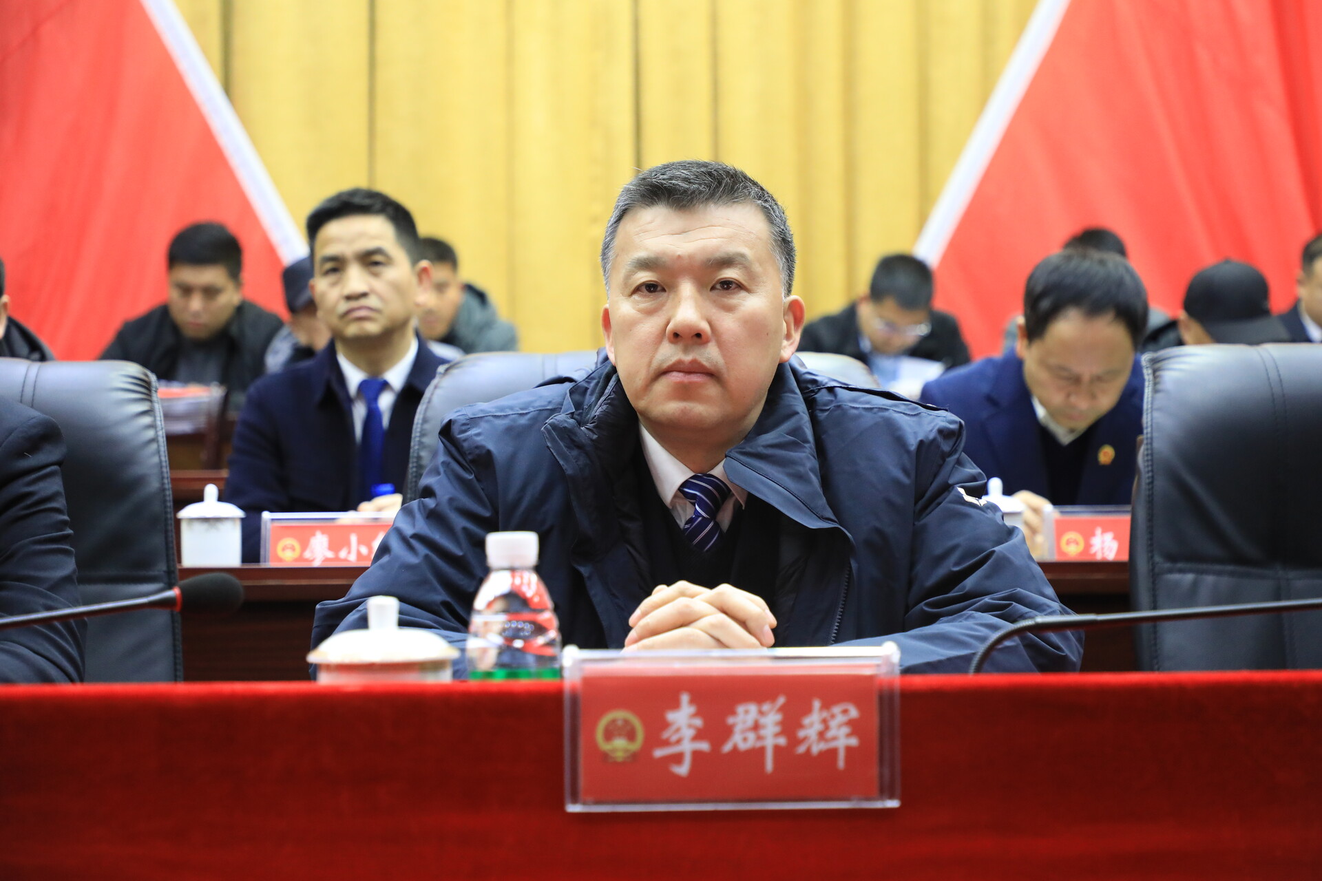 在主席台就座的有:县委常委杨敏、廖小红、钱建洪、彭浩宸、李晓波、文斌、蒋丽君、黄会波,县人民法院院长夏宁春,县人大常委会二级调研员欧阳小泉。担任过县(区、场)委书记,县人大常委会主任,县长,县政协主席的退休正处级老领导陈仕军、何绍云。