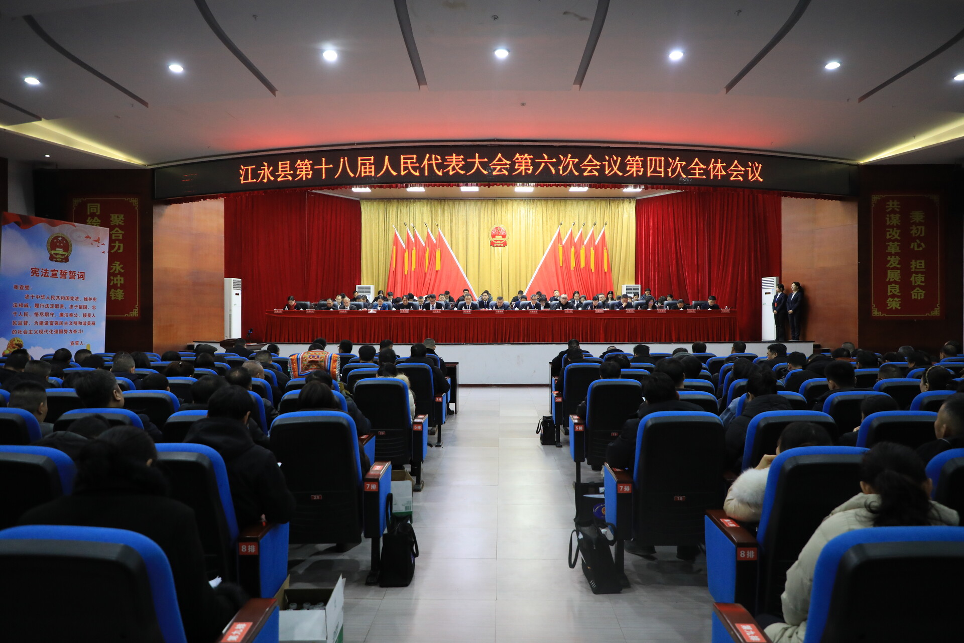 最后,江永县第十八届人民代表大会第六次会议在国歌中闭幕。