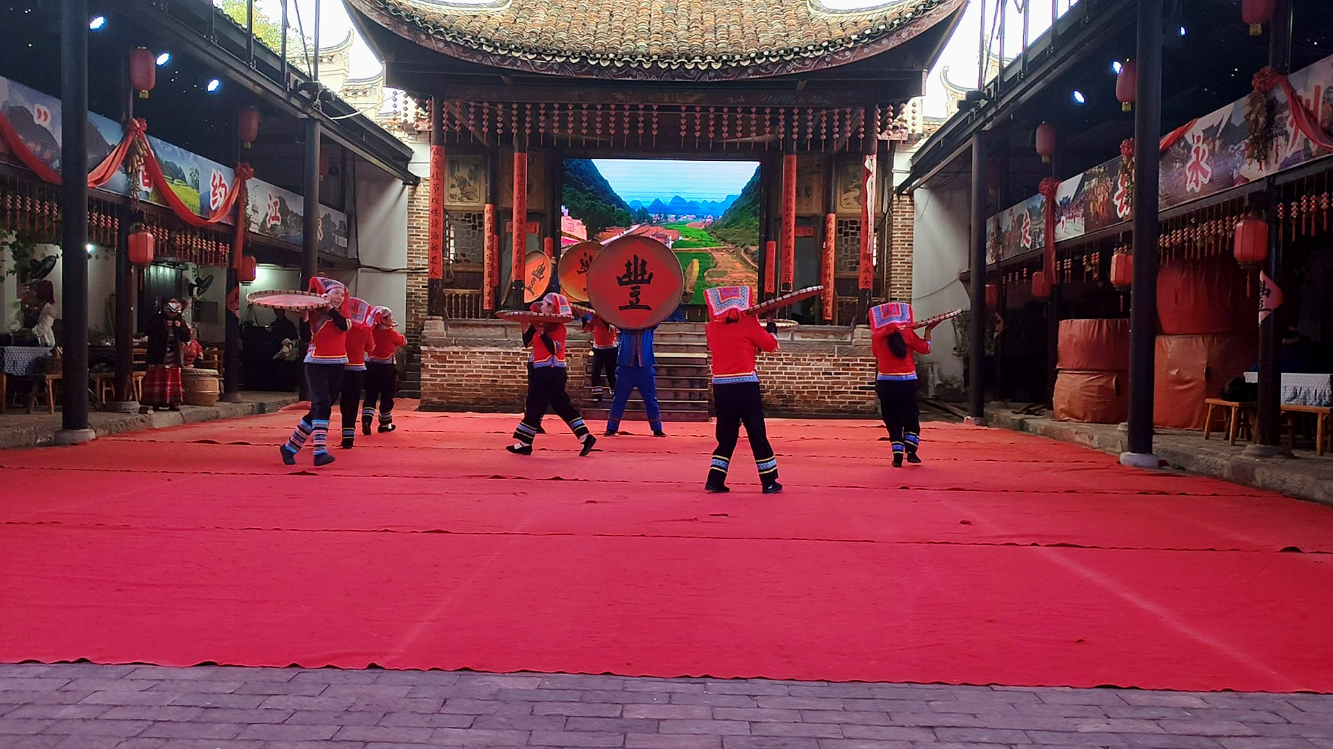 自驾团首站直奔勾蓝瑶寨。在瑶寨门口,身着瑶族盛装的村民献上醇香拦门酒,嘹亮的瑶歌响彻村寨,瞬间点燃达人们的热情。在“洗泥宴”上,团员们欣赏着特色民俗活动和精彩的传统文艺表演,亲身体验“四个鸡蛋定终身”这一勾蓝瑶独特的婚恋习俗,感受非遗的鲜活魅力。团员们还走进村寨展馆,探寻瑶寨千年繁衍的历史密码。