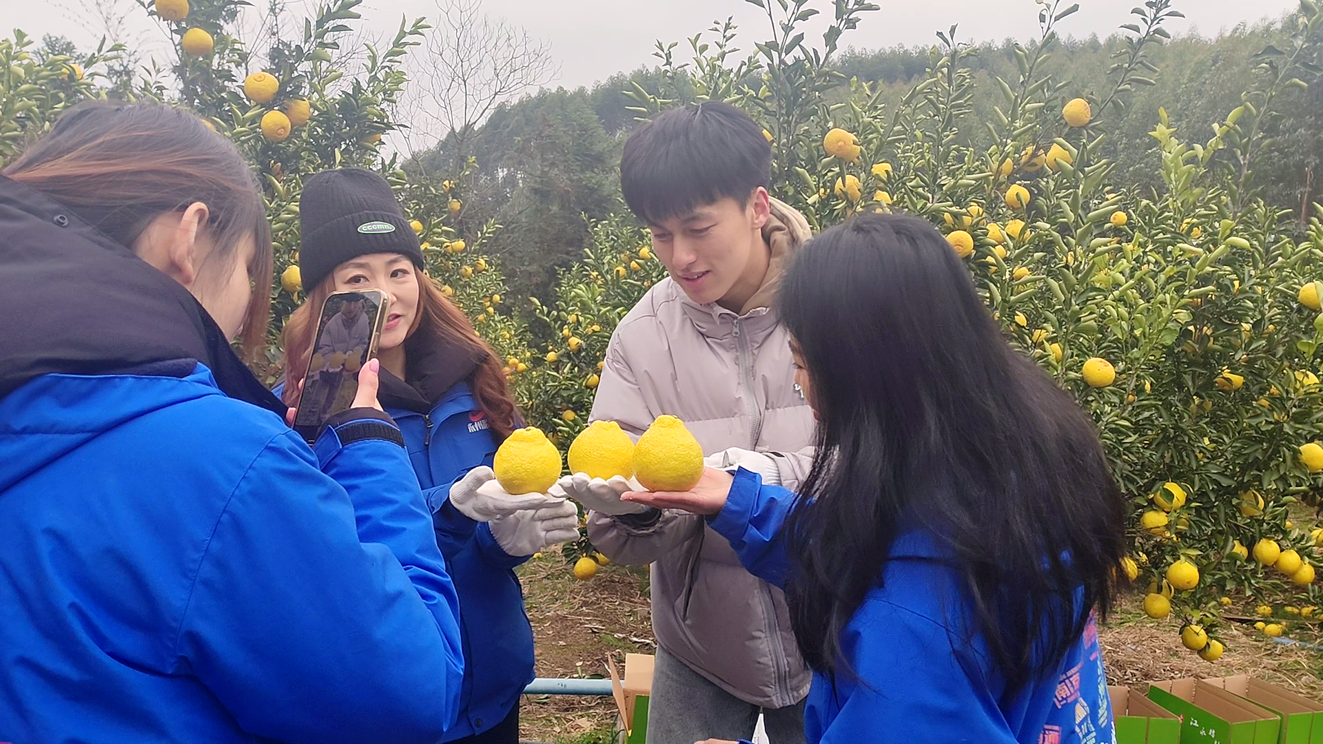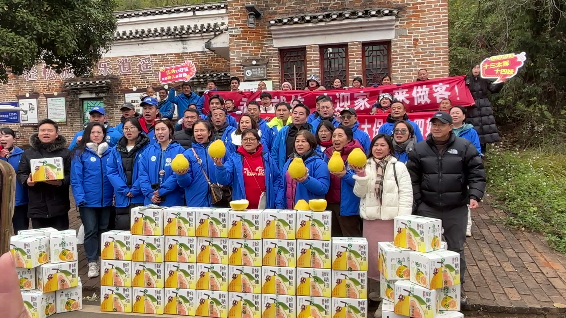 文旅体验之余,田园采摘乐趣为旅程增添别样温情。夏层铺镇的果农们主动邀请团员走进橘柚果园,亲手采摘挂满枝头的新鲜果实。金黄饱满的橘柚承载着江永的风土人情,也让江苏游客在采摘互动中体验到农耕喜悦,把江永的甘甜滋味带回家。