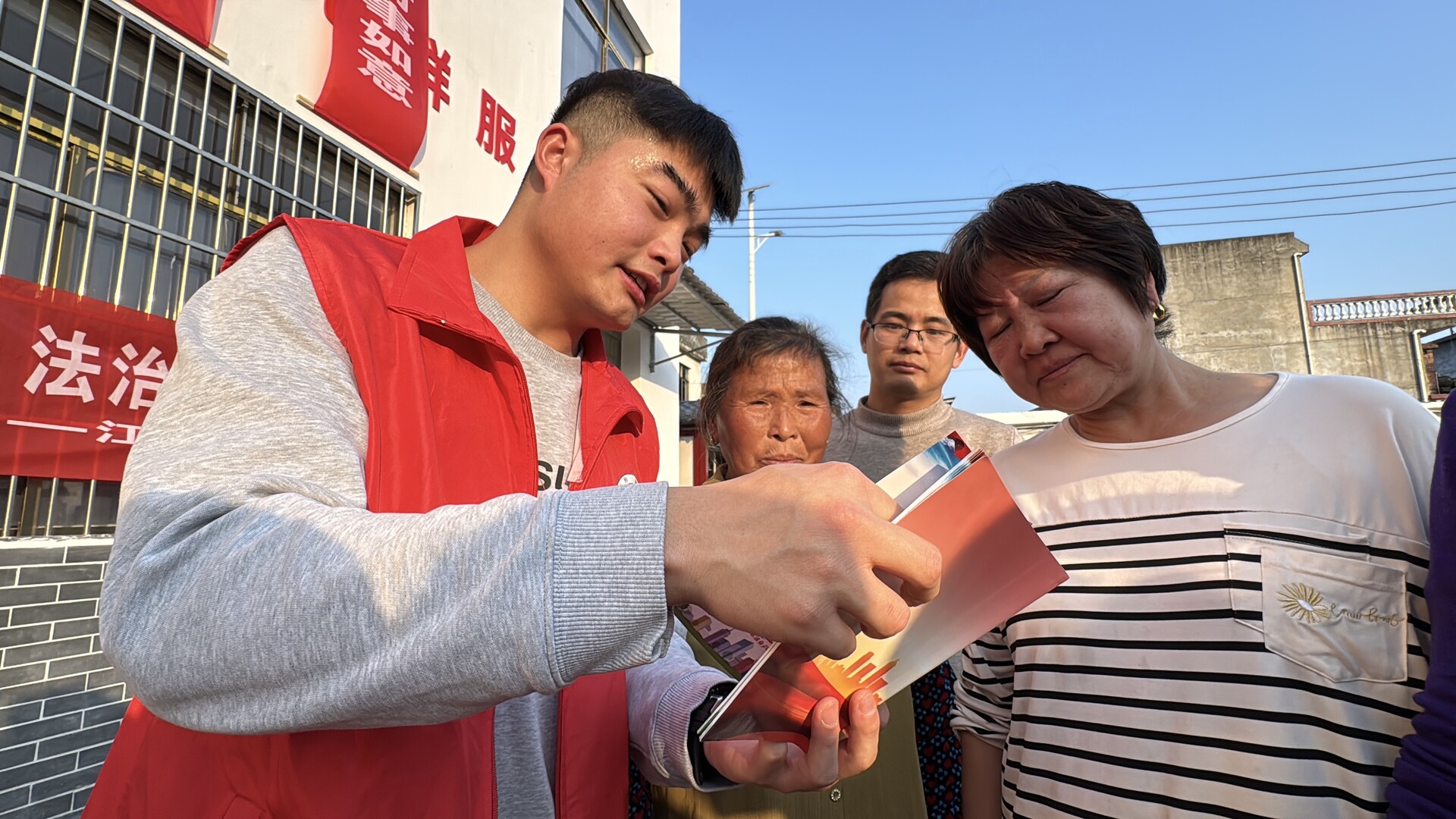 活动现场,志愿者们身披“志愿红”,通过设立咨询台、发放普法资料、以案释法等方式,用接地气的话语为村民解读民法典、反电信网络诈骗等常用法律知识,重点解答邻里矛盾、反诈维权等群众关心的问题,引导群众树立依法办事、遇事找法的理念。