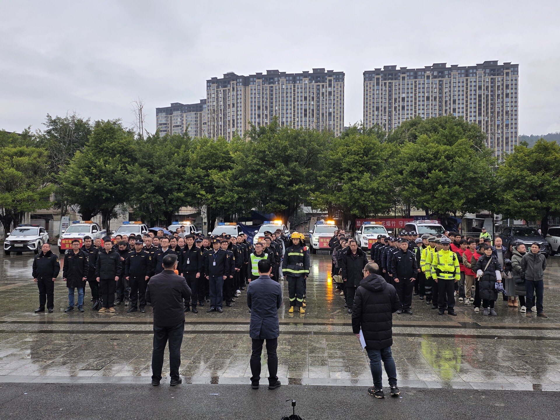 江永融媒2月12日讯(记者 毛文涛 何振堂)2 月 11 日上午,江永县在滨河广场组织开展烟花爆竹禁燃限放管控实战演练,县委常委、常务副县长杨敏,副县长蒋剑平出席,县政府办、公安、城管、消防救援大队等十余相关单位参演。