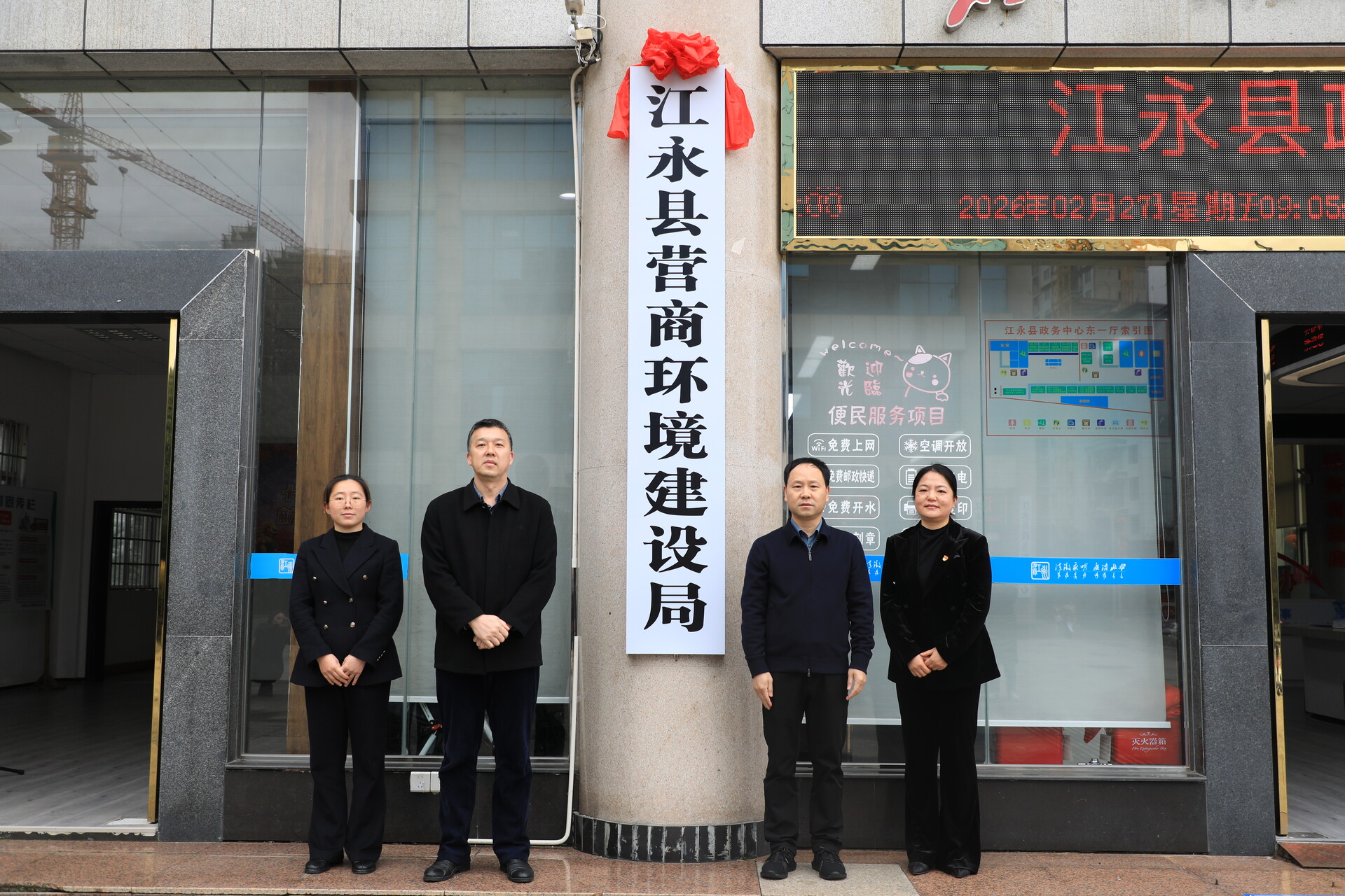 江永融媒2月28日讯(记者 周佳琳)2月27日,江永县营商环境建设局举行揭牌仪式,县委书记李群辉,县委常委、常务副县长杨敏,副县长朱国华出席。