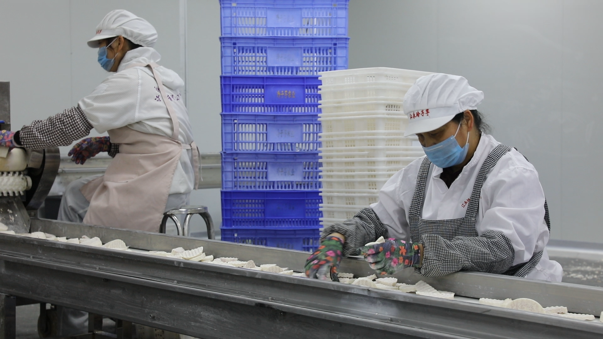 为满足持续扩大的市场需求,该企业还投资建成了万吨级冷链加工中心,形成集清洗、分选、去皮、切块、速冻、包装于一体的现代化生产线。一箱箱速冻芋头、芋泥、果蔬脆从这里源源不断下线,发往全国各地及海外市场。