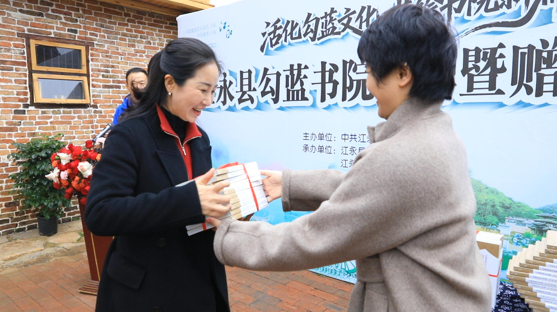 仪式由江永县委副书记、县长于思洋主持。现场,刘灿姣教授分享勾蓝瑶文化的独特价值与传承经验,她指出,勾蓝瑶寨深厚的文化积淀是江永乃至湖南的宝贵财富,勾蓝书院的落成,为乡土文化活态传承搭建了重要平台。随后,刘灿姣教授向勾蓝书院捐赠《乡愁里的古村落:勾蓝瑶寨》一书,参会领导为捐赠书籍、书画和摄影、非遗文创产品的作者颁发收藏证书,致敬文化传承者的无私奉献。