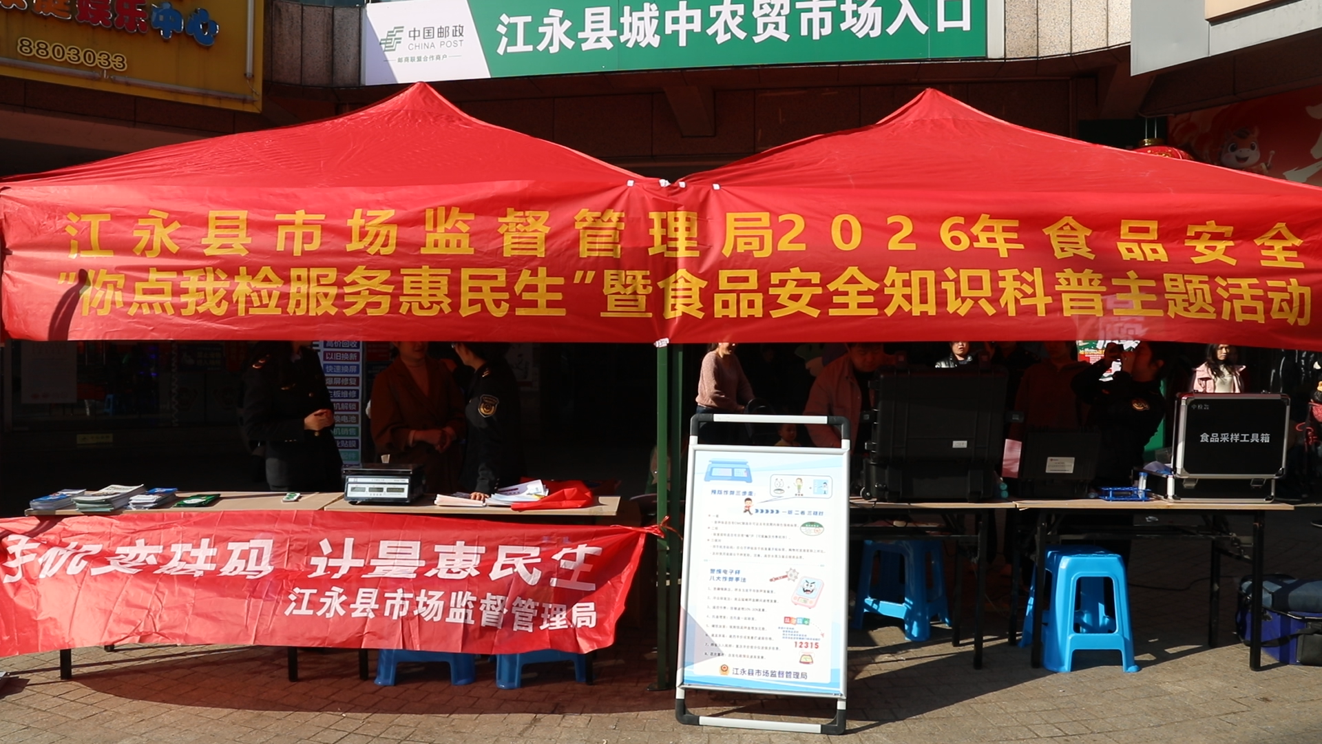 江永融媒3月16日讯(记者 廖光瑜)在3·15国际消费者权益日来临之际,3月13日,江永县市场监督管理局在城中市场组织开展“3·15”食品安全“你点我检服务惠民生”主题活动。活动通过科普宣传、群众点选、现场快检及突击检查等方式,推动食品安全监管贴近民心。