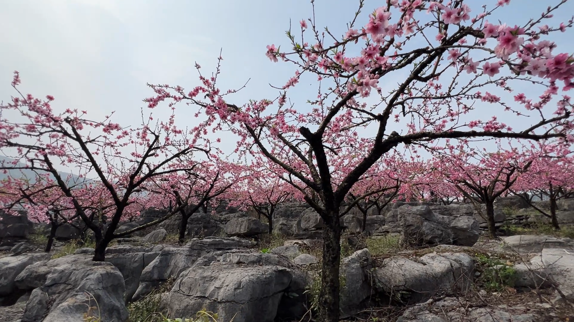 来自武汉的游客黄女士,刚走进桃林就被眼前的景象深深吸引,她对这里独特的石缝种桃景观赞不绝口。