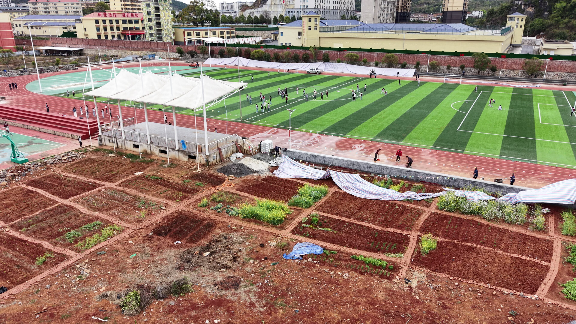 江永金海明礼学校团委书记秦富丽介绍:“学校的菜地主要是学生进行劳动实践课的。现在我们学校响应国家政策进行‘德、智、体、美、劳’的五育并举,这是我们学校的办学特色,让学生把课本上的知识和科学理念转变为实践。”