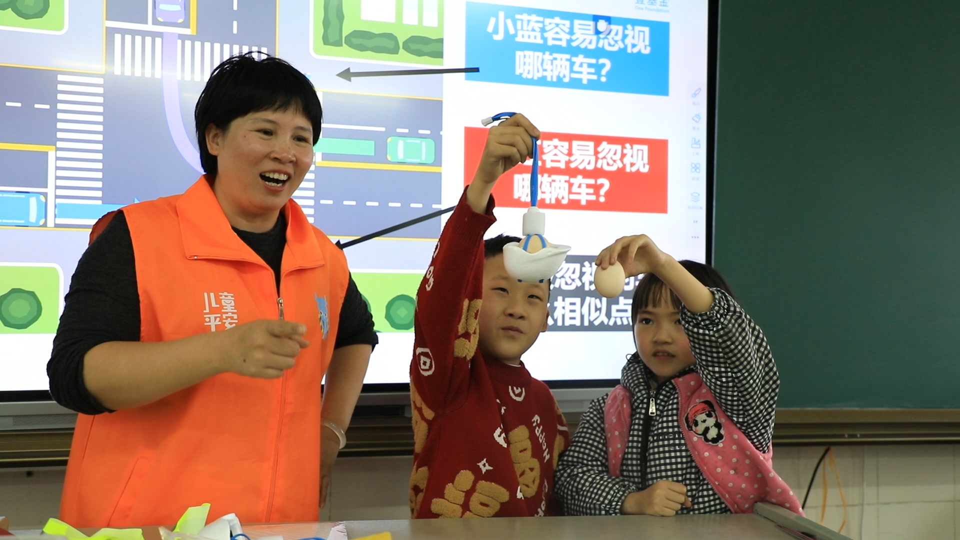 桃川完小三年级学生赵靖羽说:“头盔防护实验特别有意思,看到不戴头盔的鸡蛋摔碎后,我明白了头盔的重要性,以后骑车上学不仅自己要戴,还要提醒爸爸妈妈戴。”