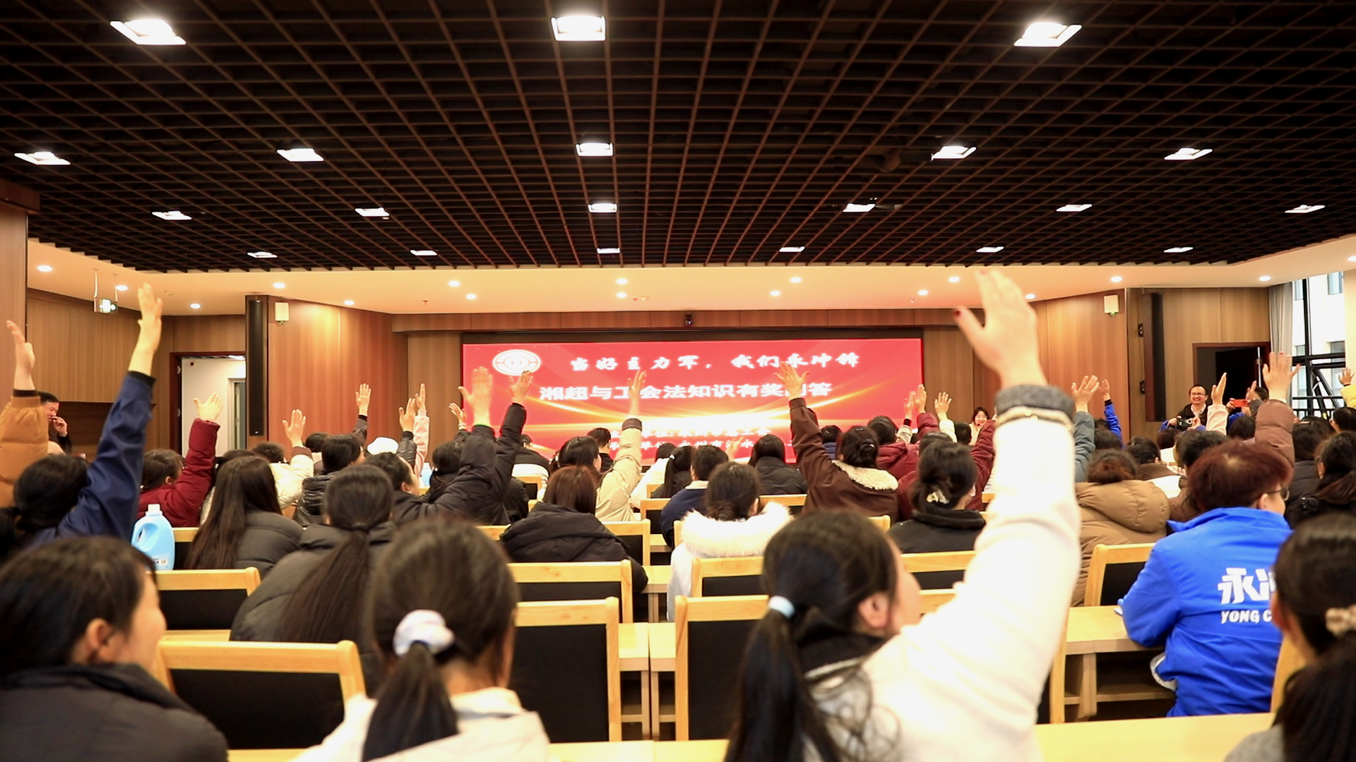 为了让知识“活起来”、让法规“记得住”,活动现场设置了趣味横生的 “湘超与工会法知识有奖问答”环节。内容涵盖湘超知识、安全生产、劳动权益保障等职工关切的热点。随着主持人的提问,台下职工纷纷举手抢答,现场气氛高潮迭起。答对问题的职工不仅赢得了实用的工会定制礼品,更在欢声笑语中加深了对自身权益和企业文化的了解。