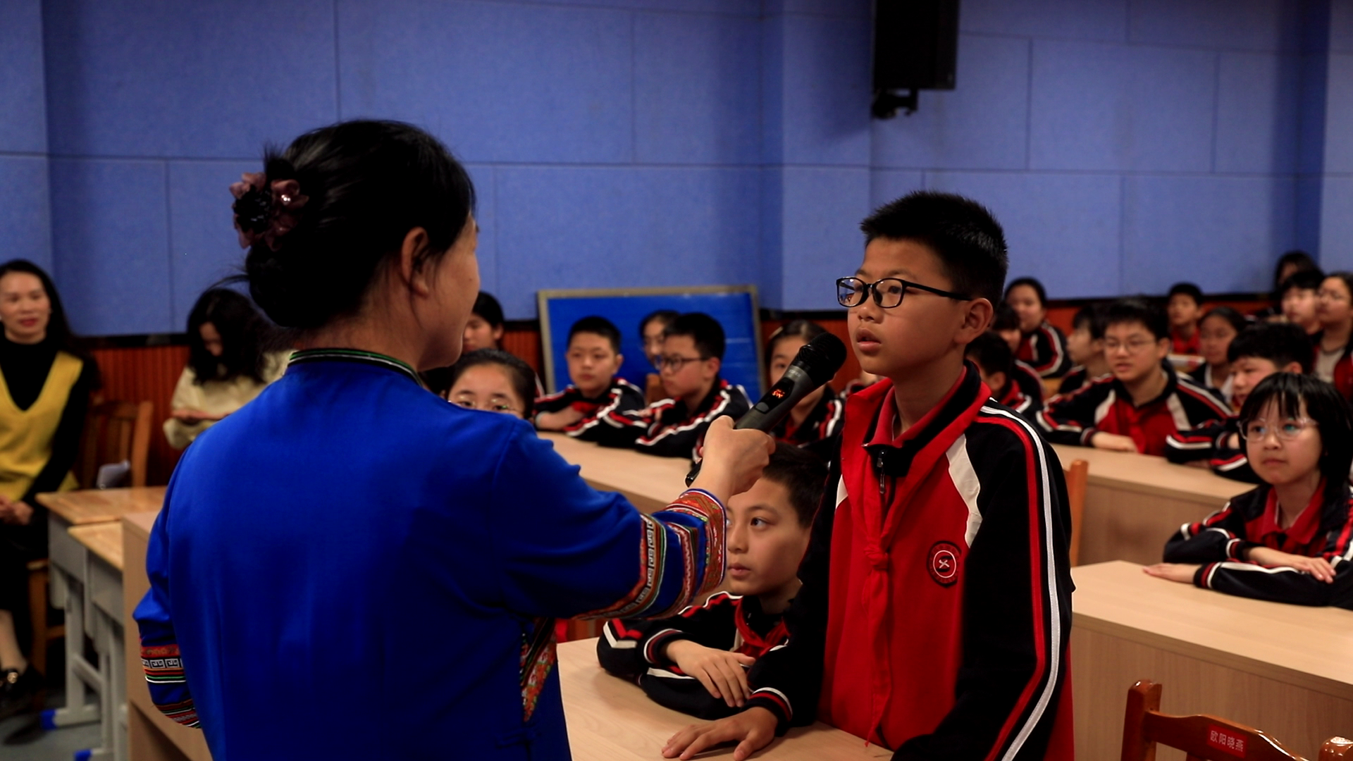 在对学生的讲座中,盘晓红以“自主学习,让人生绽放光彩”为主题,用亲切生动的语言开启分享。她以“发现自己的闪光点与优点”为切入点,结合自身教育成长经历,引导孩子们正确认识自我、肯定自我,鼓励大家在学习与生活中勇敢探索、积极进取。讲座全程穿插趣味有奖问答互动环节,孩子们踊跃举手、积极作答,现场氛围热烈活跃。活动中,她用鲜活的事例、温暖的鼓励,激励同学们珍惜校园时光,勤奋学习、锤炼本领,树立远大理想。