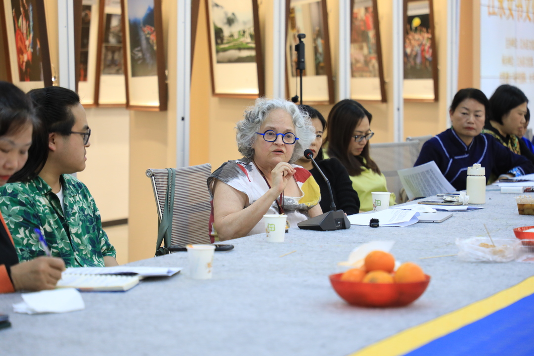 在互动交流环节,女书爱好者结合自身传承实践,就女书文字标准化、原生态学习、商业化边界及本地传承难点等问题积极提问,史凯姗教授逐一细致解答。现场交流氛围浓厚,近距离的学术对话,不仅让在场人员深受启发,也让史凯姗教授对女书的未来充满信心。