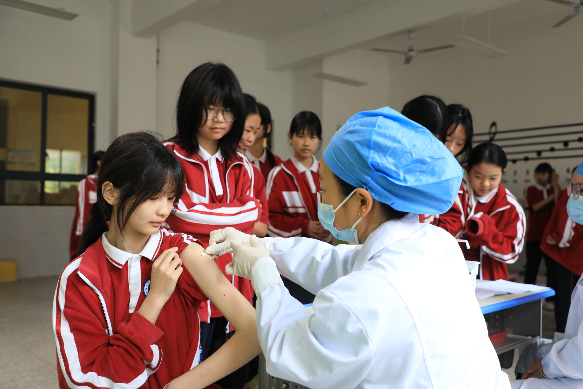 江永融媒4月9日讯(记者 周佳琳)为落实适龄女孩国产双价HPV疫苗免费接种惠民政策,江永县将疫苗接种服务送进校园,规范有序开展集中接种,筑起宫颈癌防控“青春防护盾”,用心守护青少年女性健康。