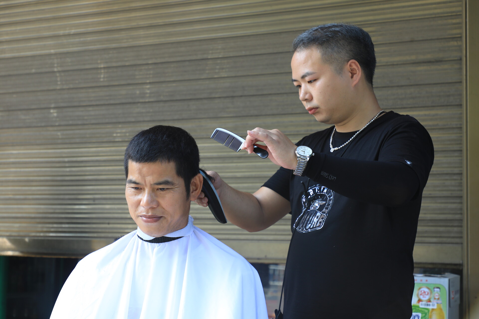 理发志愿者李小川在社区对面开了一家理发店,得知要搞慈善活动,他主动联系工作人员,自带工具,为居民修剪发型,娴熟的技术赢得居民连连称赞。