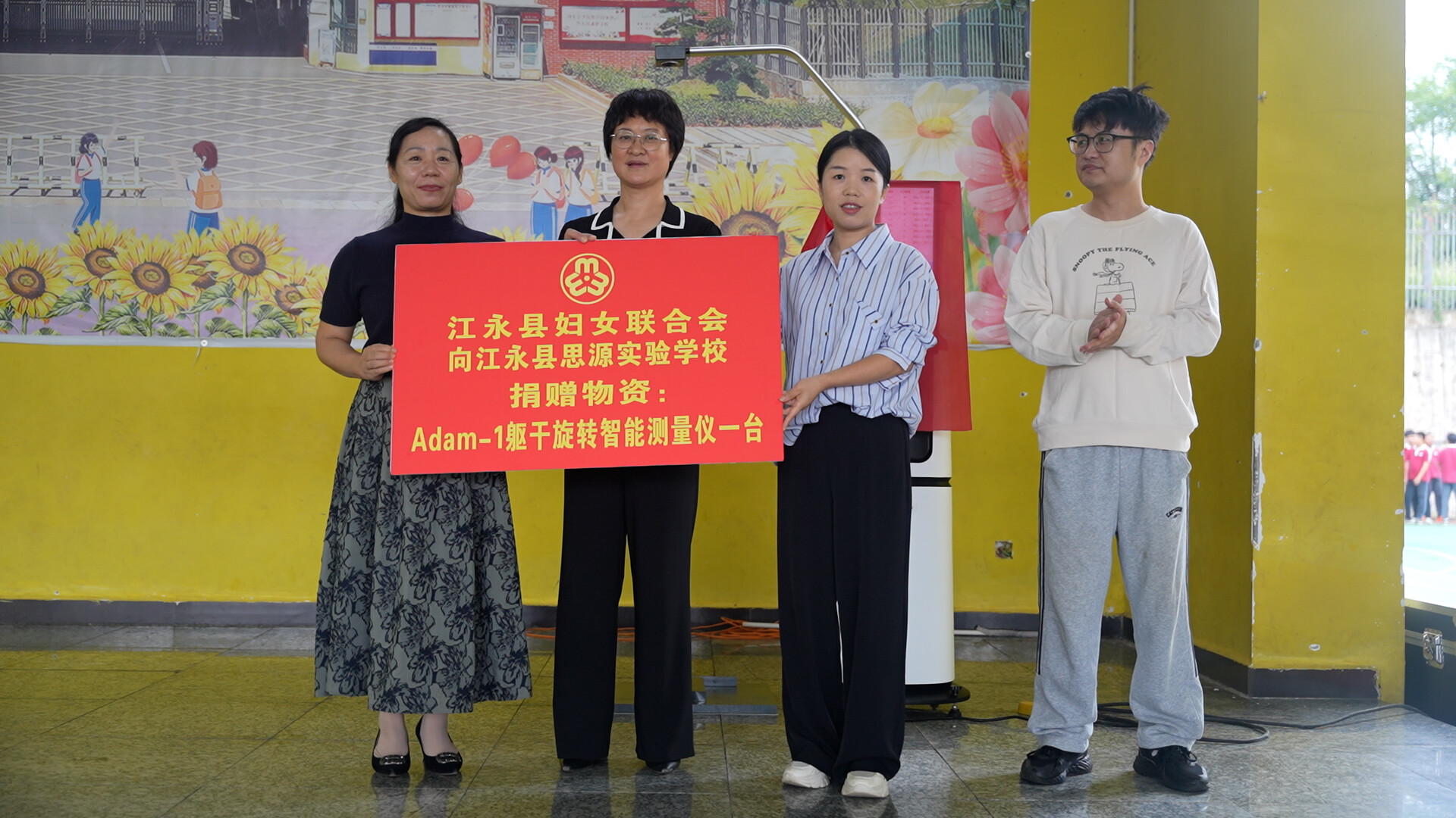 随后,县妇联相关负责人现场宣读了《江永县青少年脊柱健康“青竹行动”试点方案》。启动仪式上,县妇联向思源实验学校捐赠了一批脊柱健康检测设备,体现了社会各界对青少年健康成长的深切关怀与大力支持。在热烈的掌声中,尹玲宣布江永县青少年脊柱健康“青竹行动”正式启动。