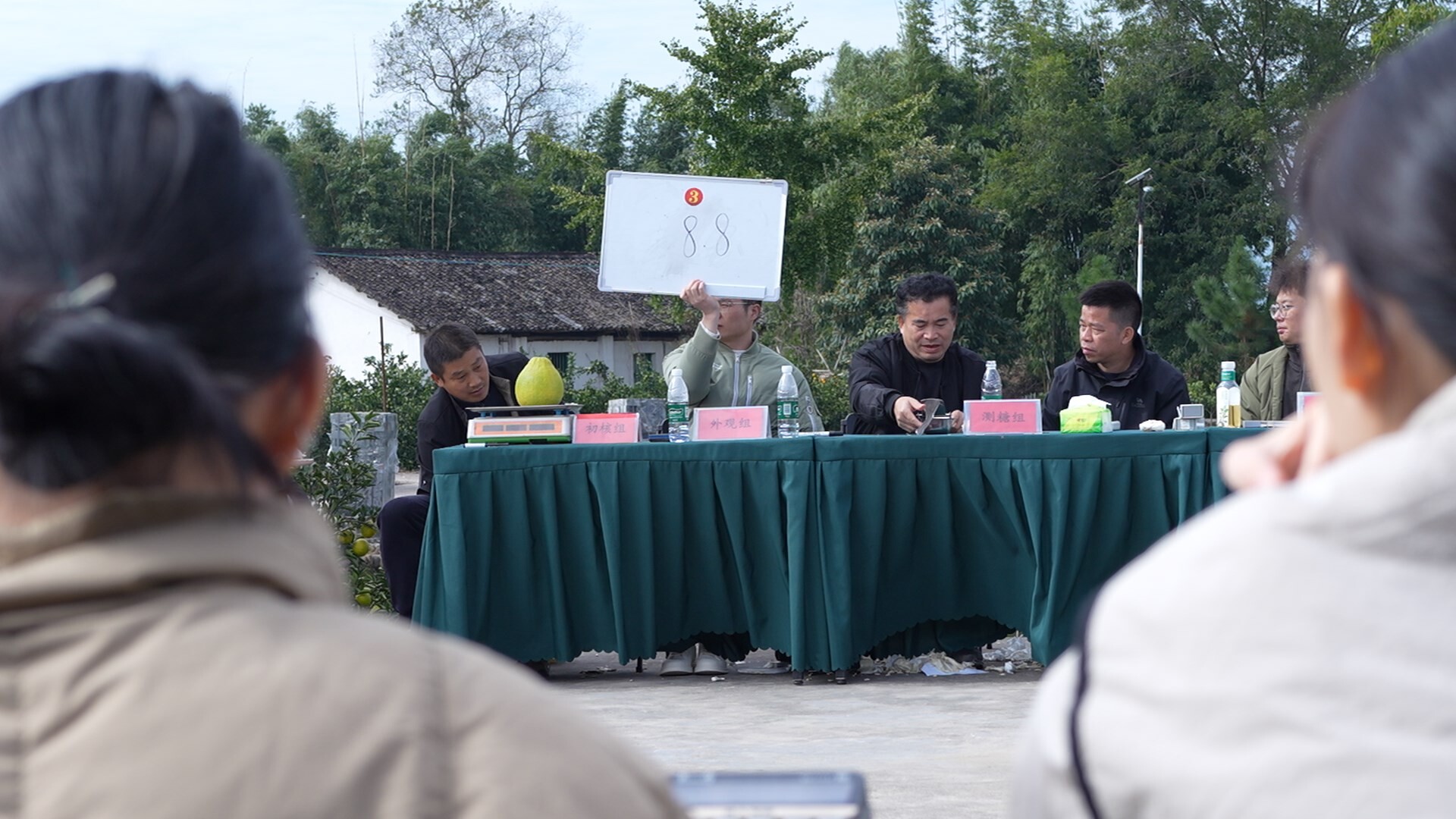 评选现场,匿名打包的柚子被随机编号,通过评委称、看、测、吃,先后对标准化生产程度、外观、可溶性固形物、肉质进行评分,对肉质打分的评委们由各香柚合作社成员、资深香柚种植户和销售大户组成,今年香柚收获成果让大家都感到高兴。