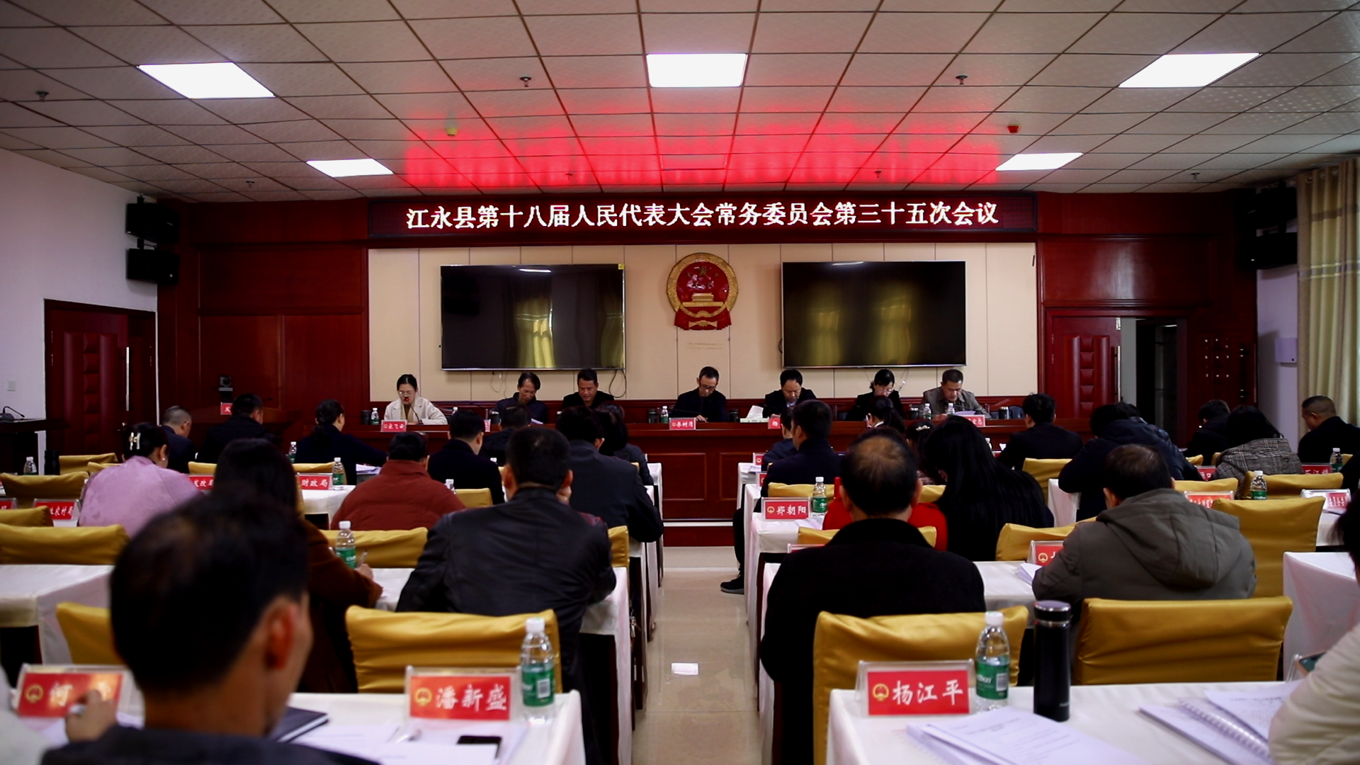 江永融媒12月16日讯(记者 欧阳文)12月15日下午,江永县第十八届人大常委会第三十五次会议召开。县人大常委会主任廖树清,县委常委、常务副县长杨敏,县人大常委会副主任何爱光、欧阳萍、罗声军、谭宏志、宋飞云、县人民法院院长夏宁春,县人民检察院检察长魏东平出席会议。