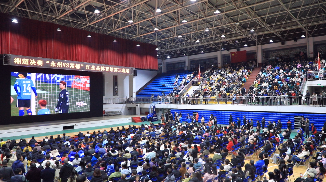 江永融媒12月29日讯(记者 周佳琳 毛文涛)湘超决赛的激情燃到了湘南边陲,永州市南端的江永县尽管地理上离得较远,但球迷群众对永州队的支持热度似火。12月27日晚,2025年湖南省足球超级联赛(湘超)圆满落幕。永州队凭借过硬实力与顽强斗志,力克常德队,成功摘得联赛桂冠。赛场之外,江永县“第三现场”热血沸腾,3000余名球迷齐聚县一中体育馆、凤凰广场,通过直播同步观赛,全程为永州队呐喊助威,热烈的氛围尽显球迷对球队的支持与热爱。