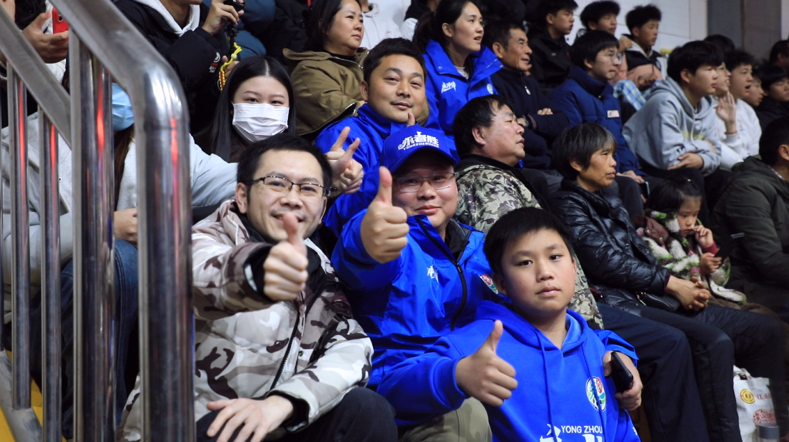 为提升观赛体验,江永县特意开放一中体育馆作为主观赛点,安排《旗鼓震山河》特色文艺表演暖场造势,并配备专业MC全程引导互动;爱心企业还贴心送上江永香柚、五香食品、橘子等本土特产,供球迷免费品尝。比赛开始前一小时,大批球迷便已陆续进场,他们高喊口号,用满满的热情为永州队助威。