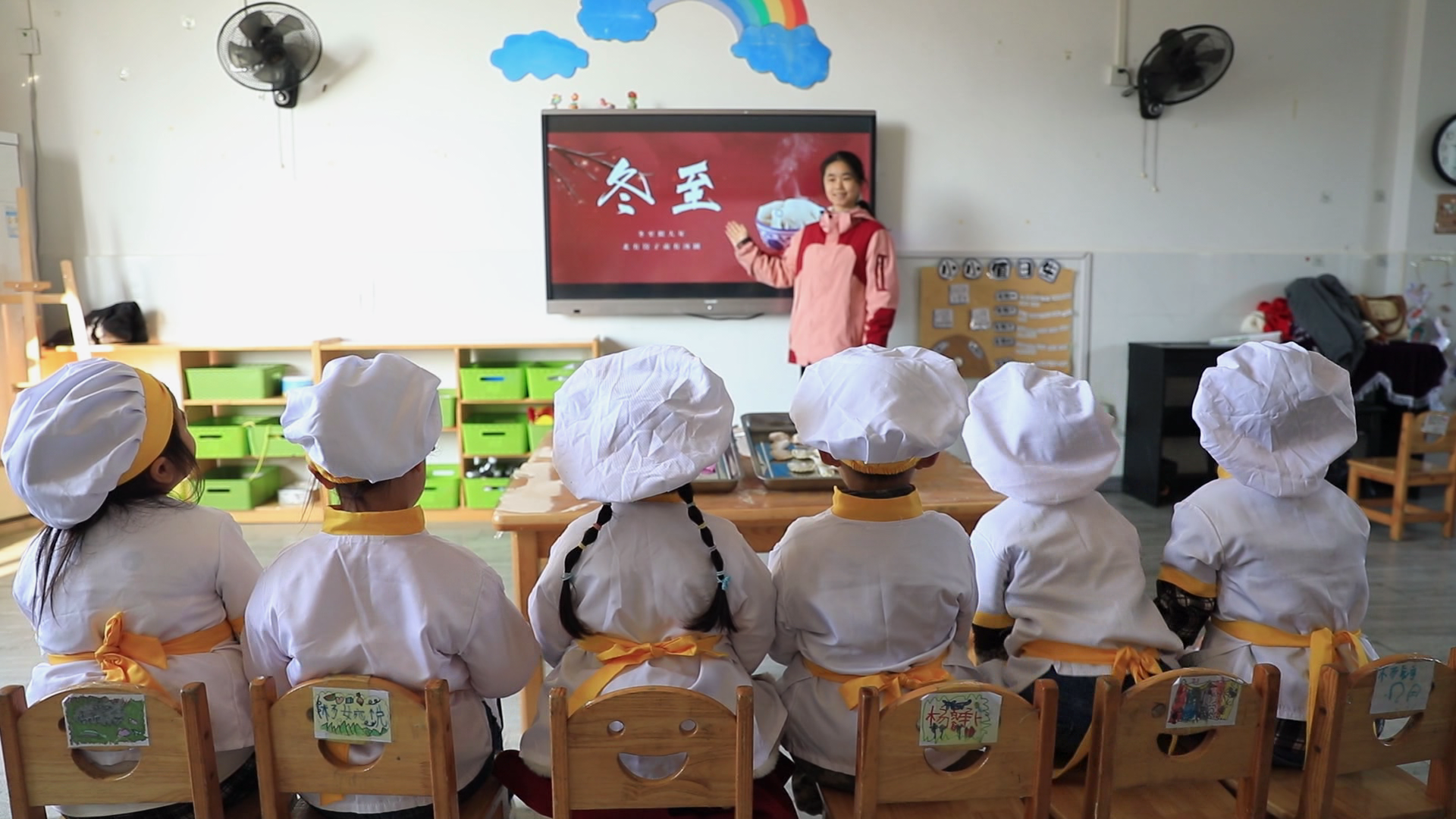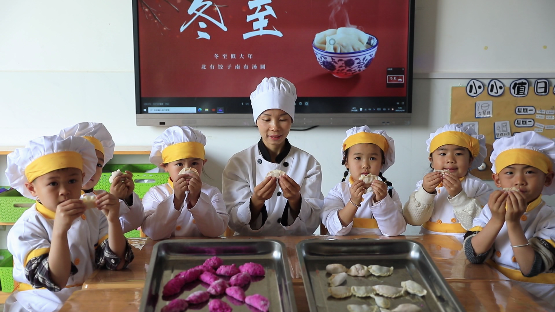 走进教室,老师正用生动形象的方式向孩子们介绍冬至的起源、习俗和意义。通过讲述“冬至大如年”的故事、冬至吃饺子的传说,让孩子们对冬至有了更深入的认识,激发了他们对传统文化的好奇心。最让孩子们期待的就是包饺子环节,老师们提前备好饺子皮、肉馅、蔬菜馅等食材,手把手教孩子们填馅、捏合。小朋友们围在桌旁,有的认真模仿老师的动作,小心翼翼地捏出漂亮的褶子;有的小朋友们发挥创意,形态各异的饺子摆满了托盘。