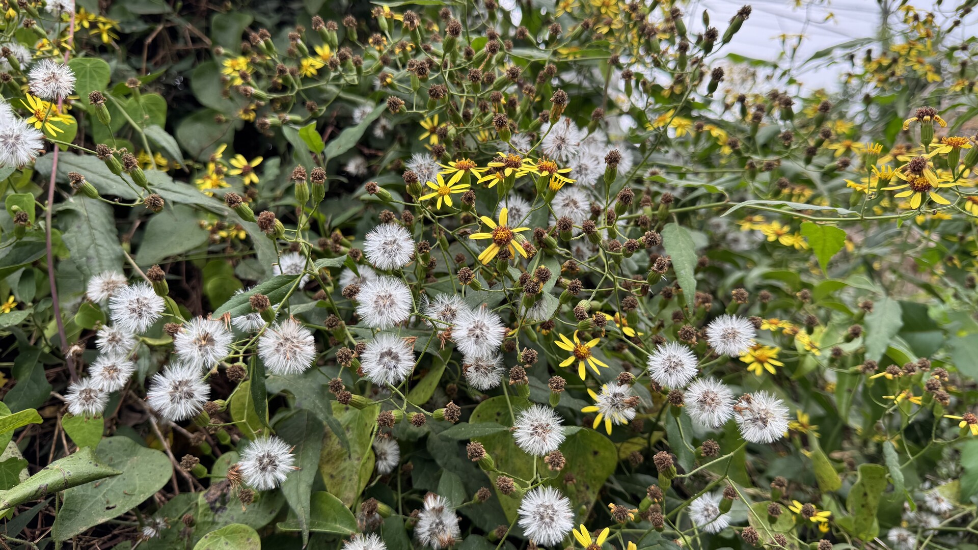 千里光是菊科千里光属多年生攀援草本植物,以秋冬季至次年春盛开的小黄花为显著特征,兼具观赏与药用价值。随着花期推进,部分千里光完成生长蜕变,花瓣渐渐褪去,花茎顶端长出蓬松的绒球,形态酷似蒲公英。微风轻拂,轻盈的种子随风飘散,开启新一轮的生命循环。