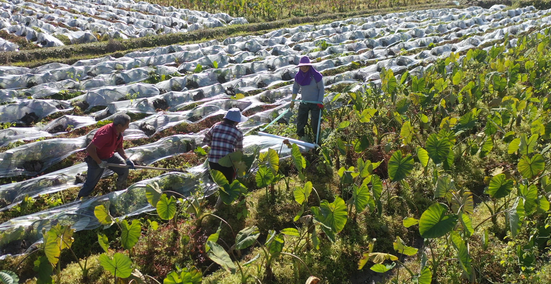 田间地头,随处可见村民们忙碌的身影。大家分工协作,开沟、铺膜、压土,一道道工序有条不紊。转眼间,连片的香芋地就披上了一层银光闪闪的“保暖外衣”,在冬日暖阳下熠熠生辉。近年来,为应对冬季低温天气对农业生产的不利影响,该村大力推广香芋覆膜保温等现代农业技术。此项技术不仅能保障香芋安全越冬,还有助于提高品质和产量,预计可使亩产增加约15%。